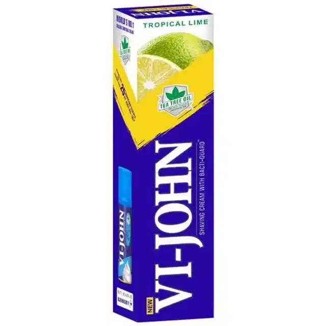 VI-JOHN Tropical Lime Shaving Cream for Men with Tea Tree oil and Bacti  guard 125 g