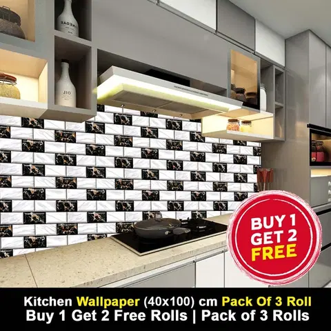 Vinyl Wallpaper for Kitchen Wall, Multicolor, 100x40 cm, Pack of 3 @ ₹270 - Buy Online at CityMall