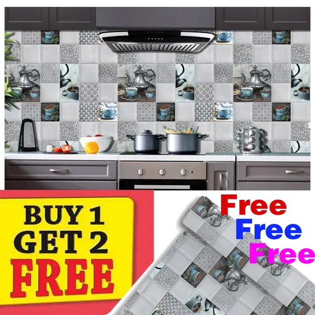 Vinyl Waterproof Wallpaper Roll for Kitchen Wall, Multicolor, 1 m, Pack of 3 - Buy Online at CityMall