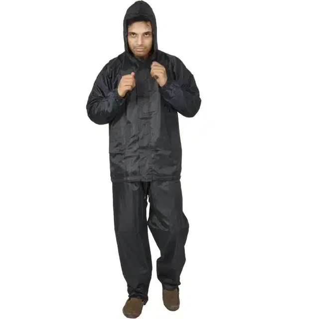 N G Products Men's & Women's Raincoat, Rainwear, Barsaati, Rainsuit with Hood, Side Pocket 100% Waterproof Portable Rain Suit Size-Free (Black)