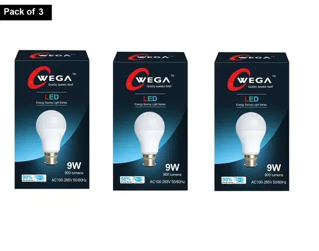 Wega 9 W Standard B22 LED Bulb, Cool White, Pack of 3 - Buy Online at CityMall