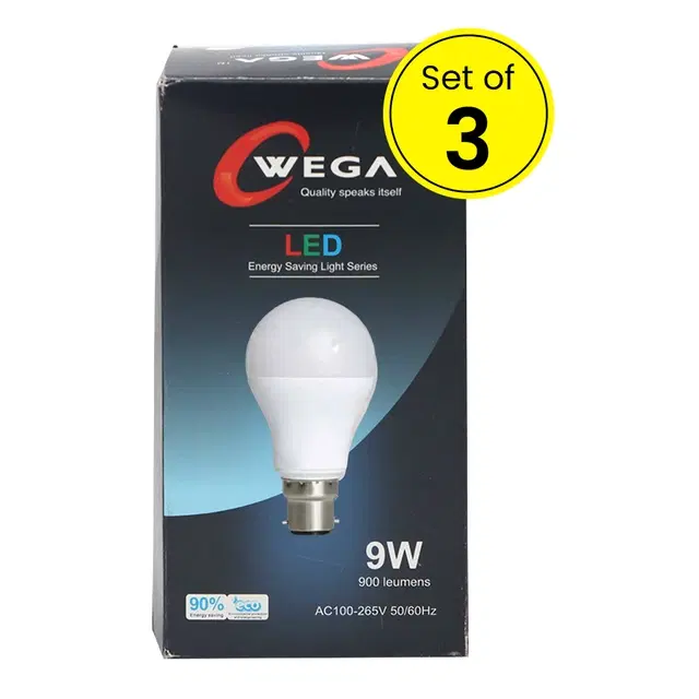 Wega 9 W Standard B22 LED Bulb (Cool White, Pack of 3)