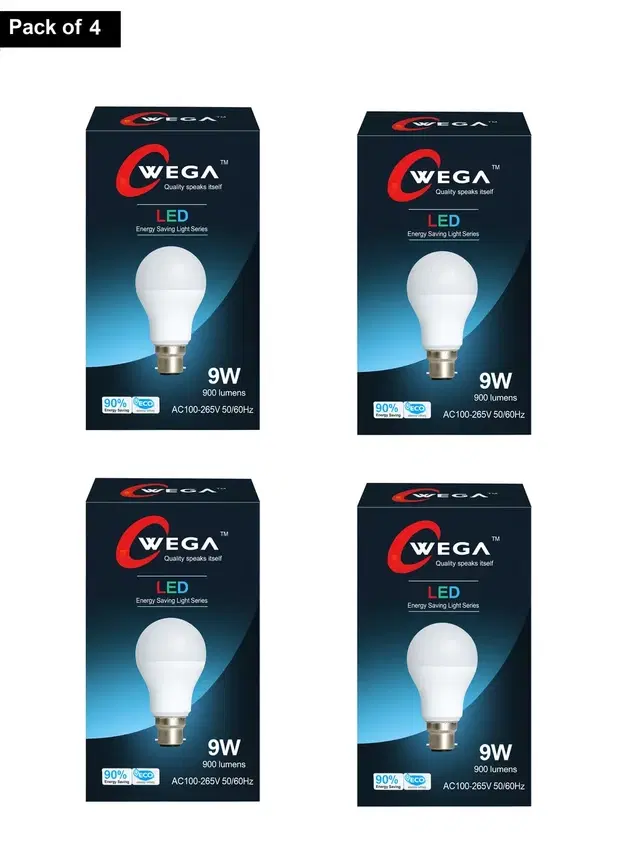 Wega 9 W Standard B22 LED Bulb, Cool White, Pack of 4 - Buy Online at CityMall