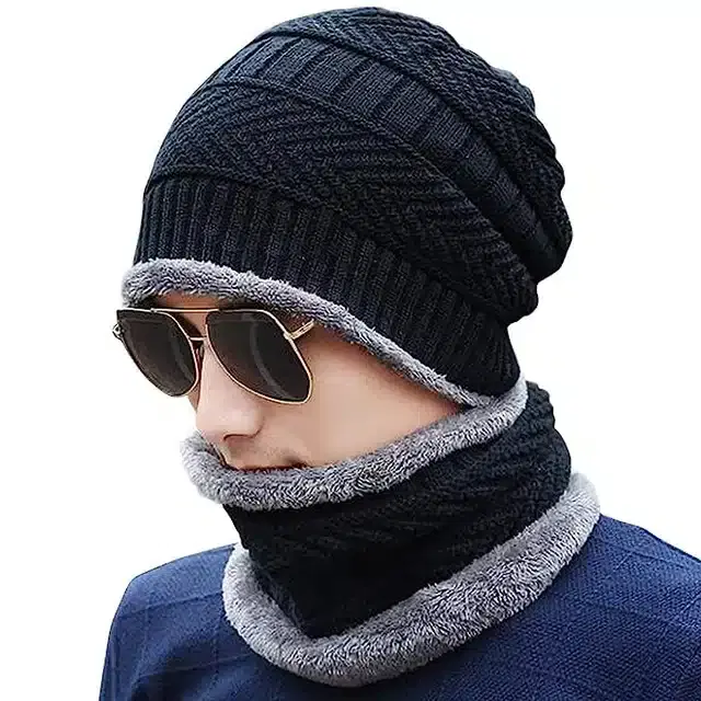 Winter Cap with Neck Warmer for Men, Set of 1 (Black) - Buy Online at CityMall