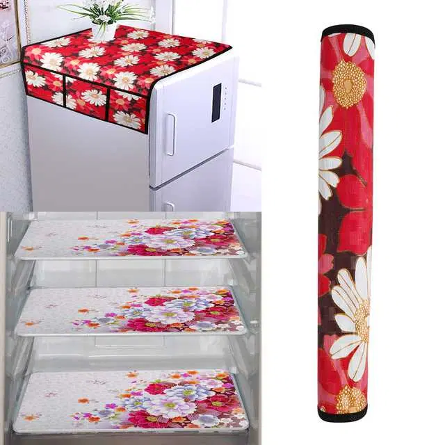 WISHLAND 1 Pc Fridge Cover for Top with 6 Pockets, 1 Handle Cover, 3 Fridge Mats, Set of 5, 21X39 inch, A-114