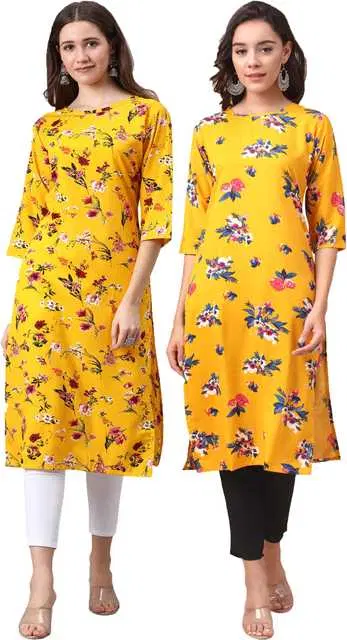 Women Crepe Printed Kurta, Pack Of 2 (Yellow, L) (SD-441)