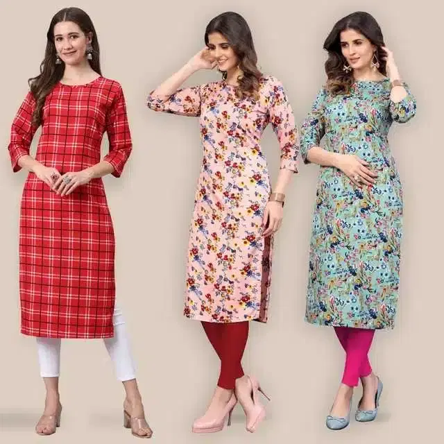 Women Crepe Printed Kurta, Pack Of 3 (Multicolor, L) (SD-239)