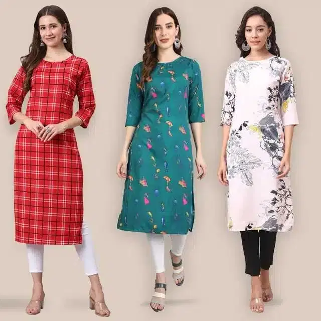 Women Crepe Printed Kurta, Pack Of 3 (Multicolor, L) (SD-322)