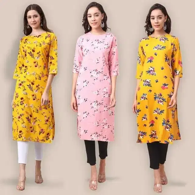 Women Crepe Printed Kurta, Pack Of 3 (Multicolor, L) (SD-397)