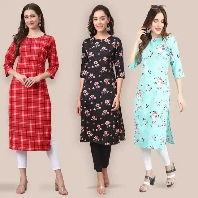 Women Crepe Printed Kurta, Pack Of 3 (Multicolor, M) (SD-225)