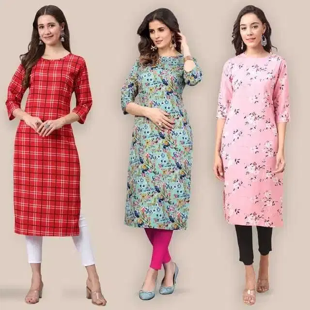 Women Crepe Printed Kurta, Pack Of 3 (Multicolor, M) (SD-277)