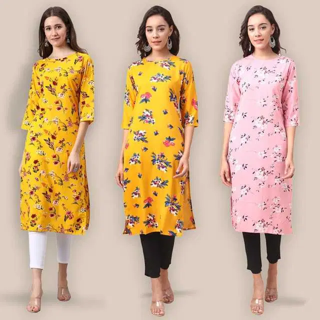 Women Crepe Printed Kurta, Pack Of 3 (Multicolor, M) (SD-428)