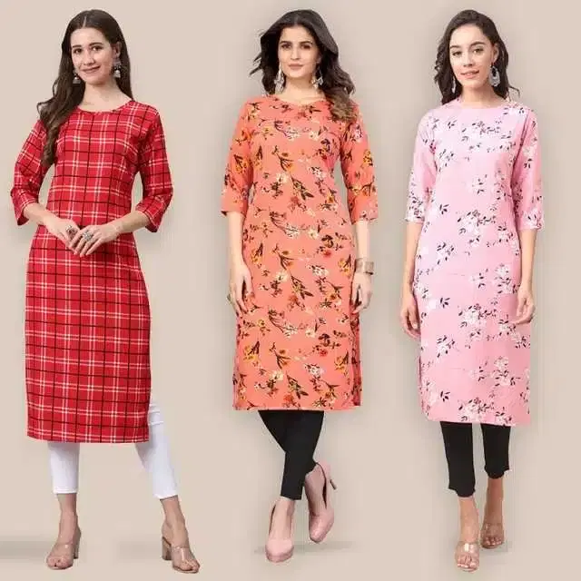 Women Crepe Printed Kurta, Pack Of 3 (Multicolor, S) (SD-248)