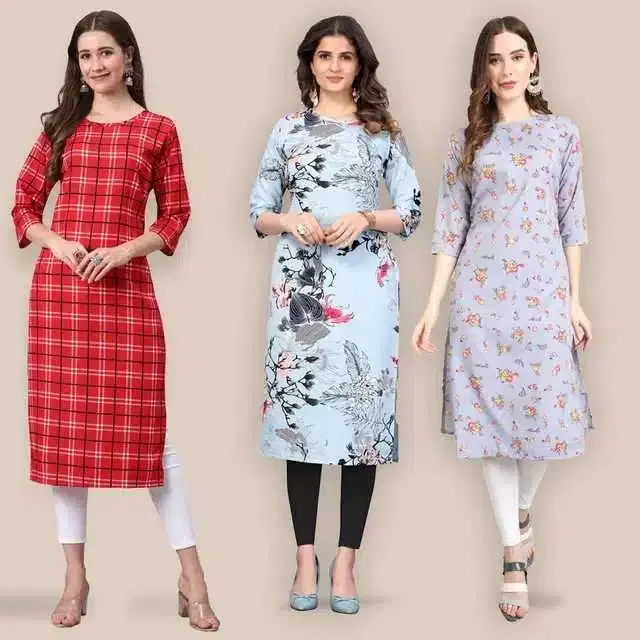 Women Crepe Printed Kurta, Pack Of 3 (Multicolor, S) (SD-270)