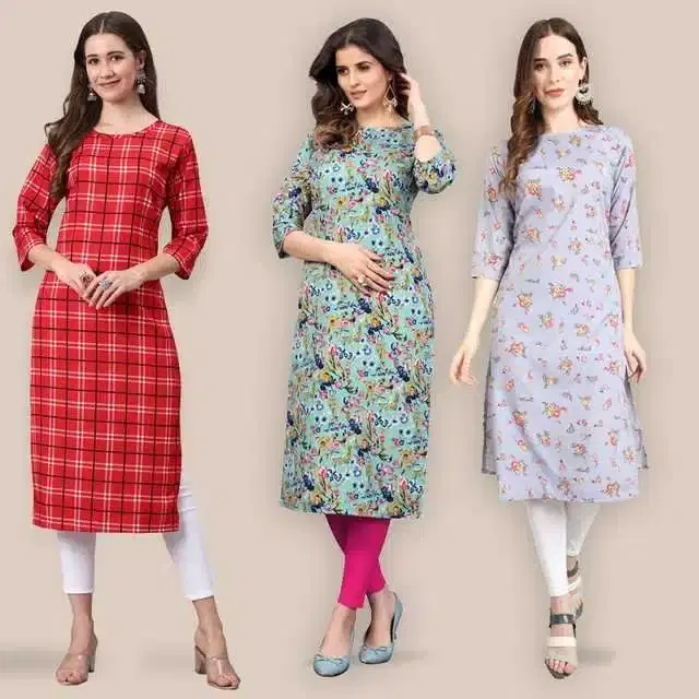 Women Crepe Printed Kurta, Pack Of 3 (Multicolor, S) (SD-284)