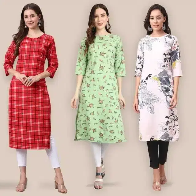 Women Crepe Printed Kurta, Pack Of 3 (Multicolor, S) (SD-308)