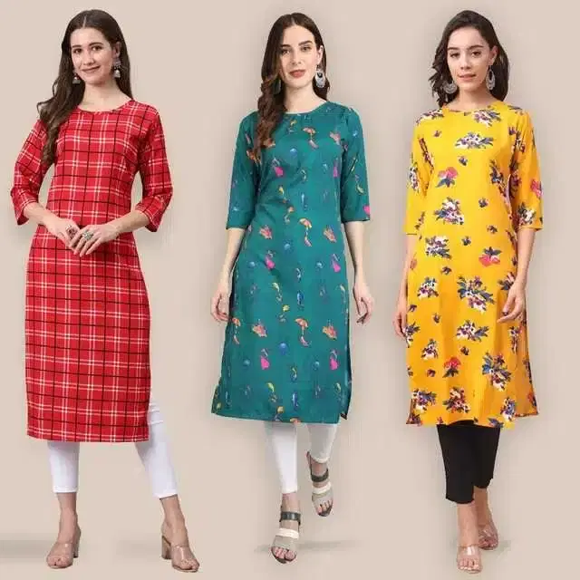 Women Crepe Printed Kurta, Pack Of 3 (Multicolor, S) (SD-323)