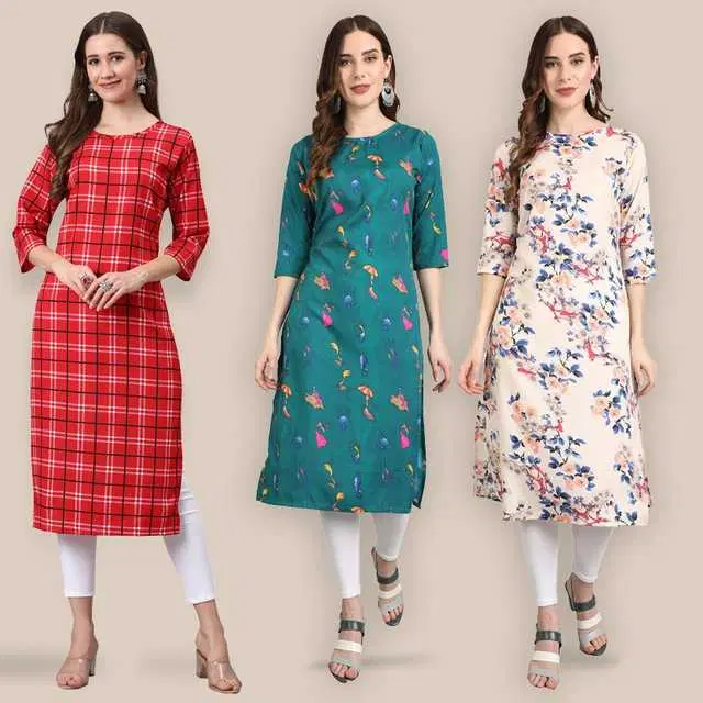 Women Crepe Printed Kurta, Pack Of 3 (Multicolor, L) (SD-332) - Buy Online at CityMall