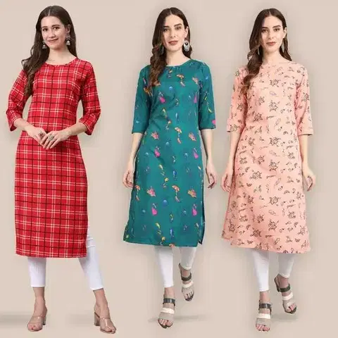 Women Crepe Printed Kurta, Pack Of 3 (Multicolor, S) (SD-333)