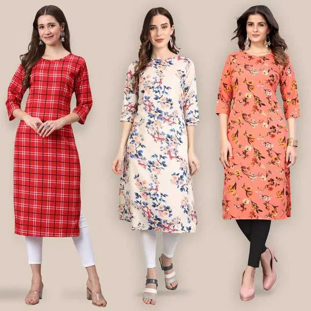 Women Crepe Printed Kurta, Pack Of 3 (Multicolor, S) (SD-341)