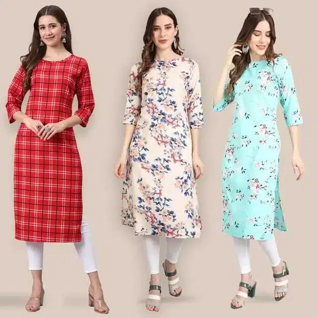 Women Crepe Printed Kurta, Pack Of 3 (Multicolor, XL) (SD-1345) - Buy Online at CityMall