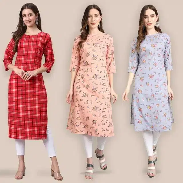 Women Crepe Printed Kurta, Pack Of 3 (Multicolor, S) (SD-358) - Buy Online at CityMall