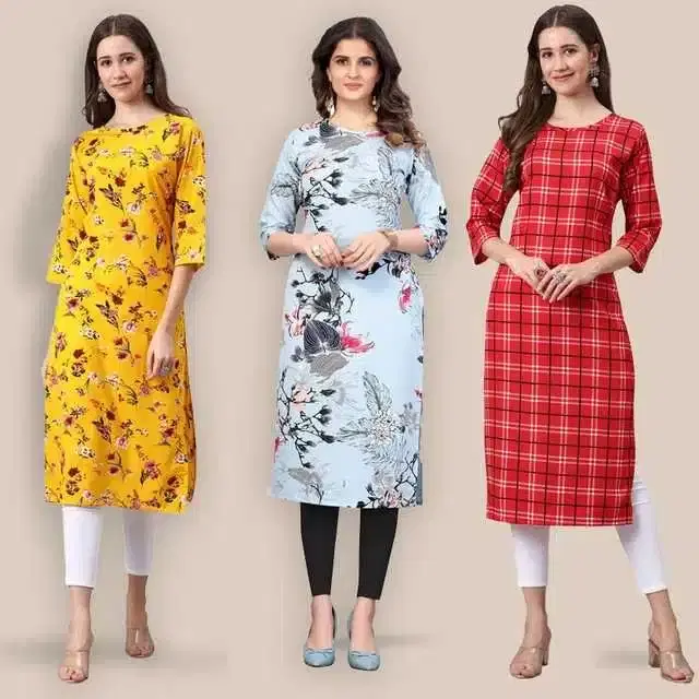 Women Crepe Printed Kurta, Pack Of 3 (Multicolor, S) (SD-487)