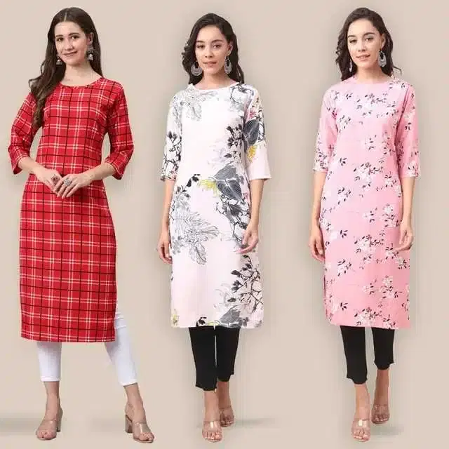 Women Crepe Printed Kurta, Pack Of 3 (Multicolor, XL) (SD-186)