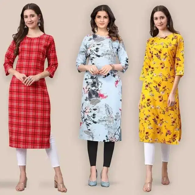 Women Crepe Printed Kurta, Pack Of 3 (Multicolor, XL) (SD-261)