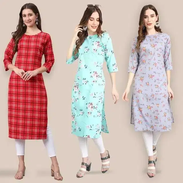 Women Crepe Printed Kurta, Pack Of 3 (Multicolor, XL) (SD-300)