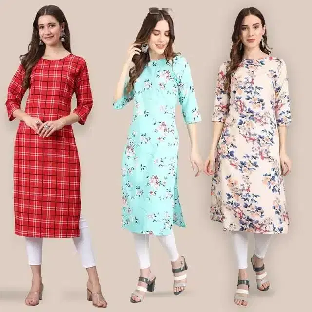 Women Crepe Printed Kurta, Pack Of 3 (Multicolor, XL) (SD-303)