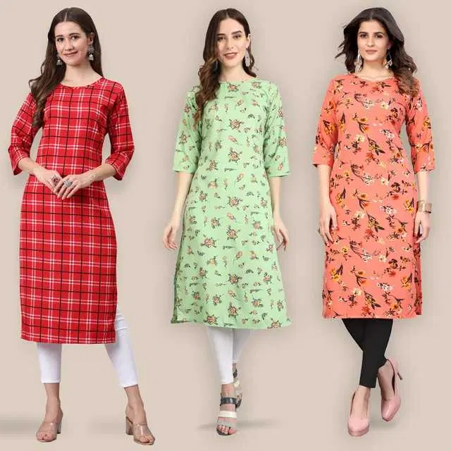 Women Crepe Printed Kurta, Pack Of 3 (Multicolor, XL) (SD-312)