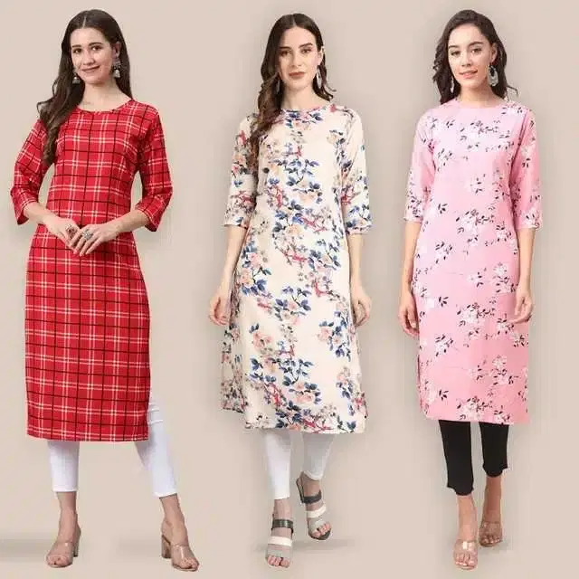 Women Crepe Printed Kurta, Pack Of 3 (Multicolor, XL) (SD-336)