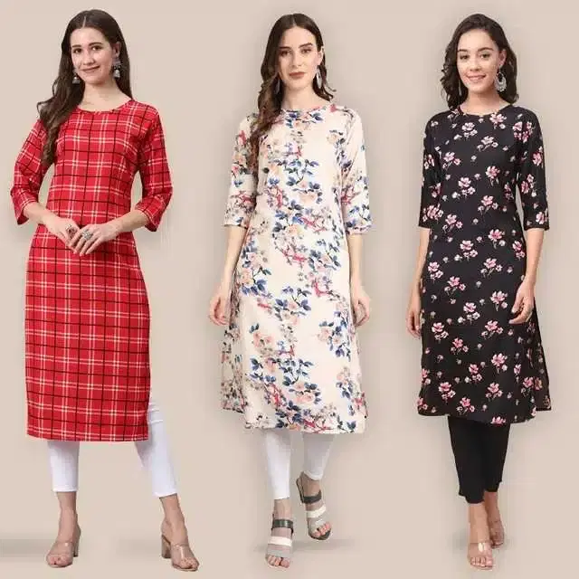Women Crepe Printed Kurta, Pack Of 3 (Multicolor, M) (SD-339) - Buy Online at CityMall
