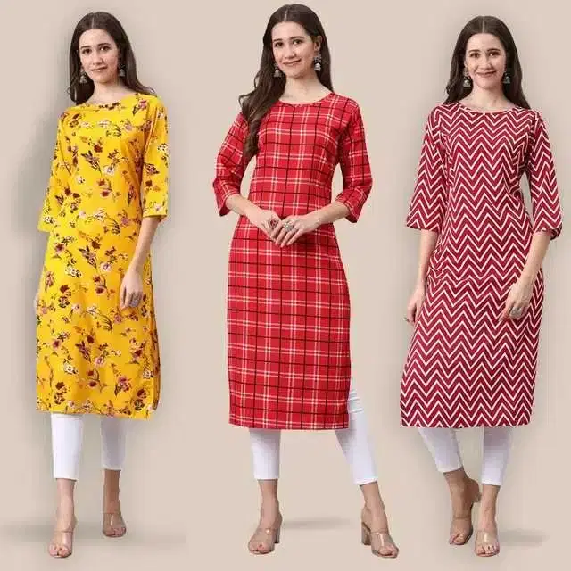 Women Crepe Printed Kurta, Pack Of 3 (Multicolor, XL) (SD-364)