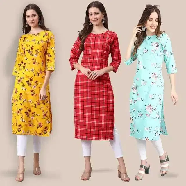Women Crepe Printed Kurta, Pack Of 3 (Multicolor, XL) (SD-1374)