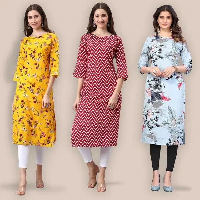 Women Crepe Printed Kurta, Pack Of 3 (Multicolor, XL) (SD-385)