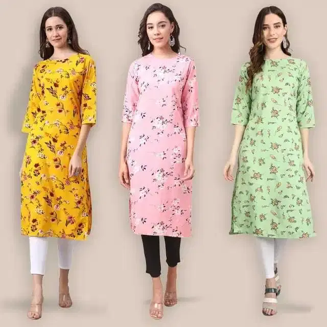 Women Crepe Printed Kurta, Pack Of 3 (Multicolor, XL) (SD-405)