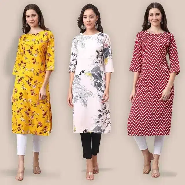 Women Crepe Printed Kurta, Pack Of 3 (Multicolor, XL) (SD-411)