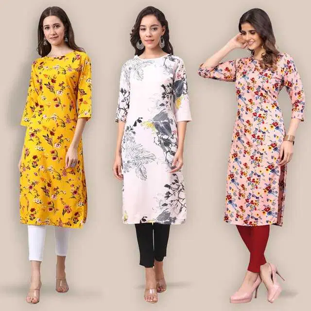 Women Crepe Printed Kurta, Pack Of 3 (Multicolor, XL) (SD-415)