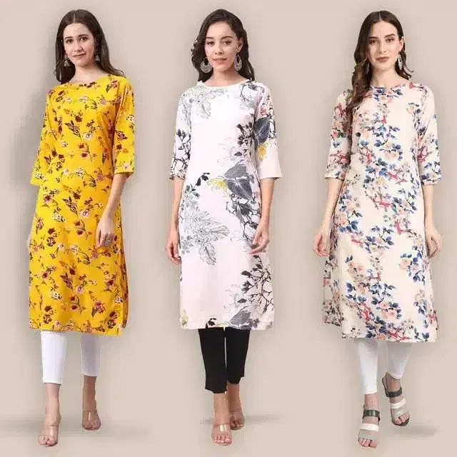 Women Crepe Printed Kurta, Pack Of 3 (Multicolor, XL) (SD-423)