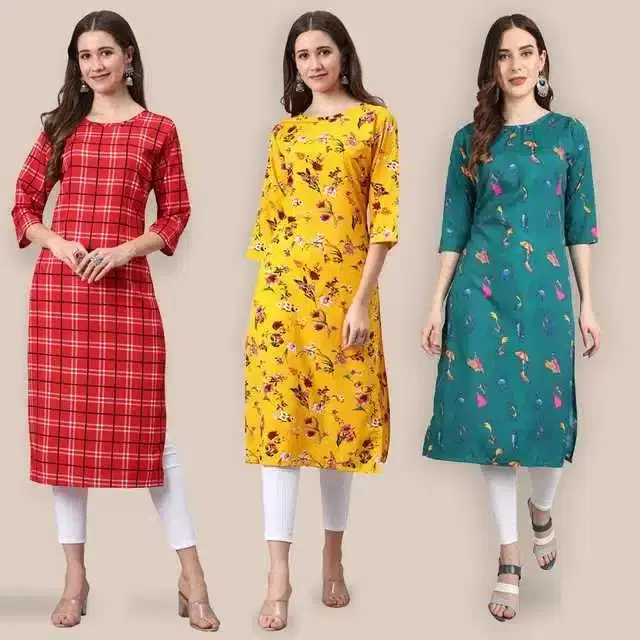 Women Crepe Printed Kurta, Pack Of 3 (Multicolor, XXL) (SD-149)