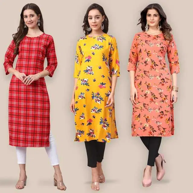 Women Crepe Printed Kurta, Pack Of 3 (Multicolor, XXL) (SD-205)