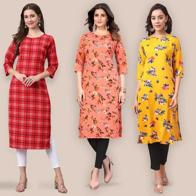 Women Crepe Printed Kurta, Pack Of 3 (Multicolor, XXL) (SD-250)