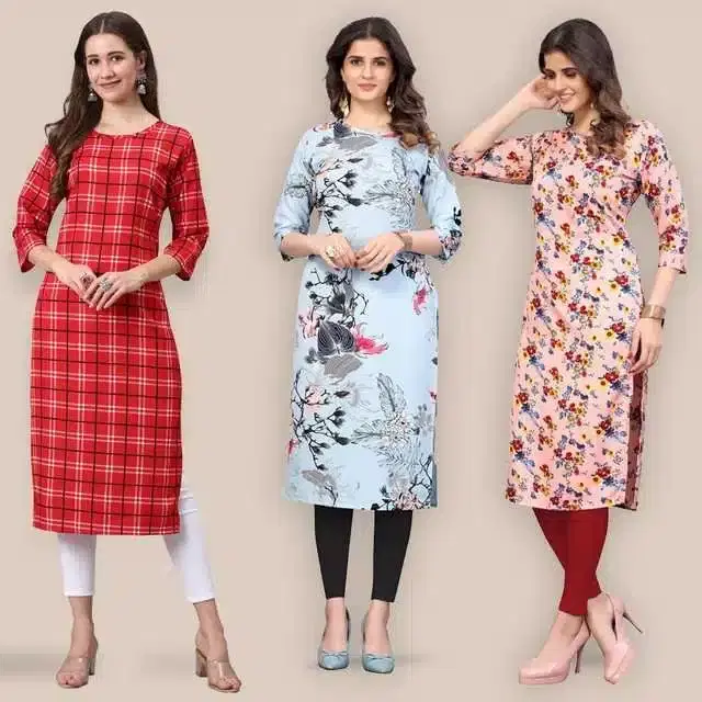 Women Crepe Printed Kurta, Pack Of 3 (Multicolor, XXL) (SD-267)