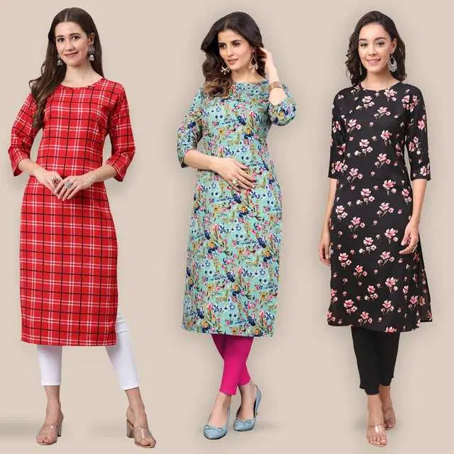 Women Crepe Printed Kurta, Pack Of 3 (Multicolor, XXL) (SD-280)