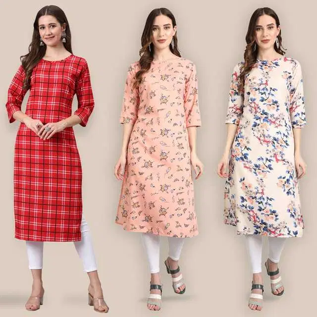 Women Crepe Printed Kurta, Pack Of 3 (Multicolor, XXL) (SD-362)