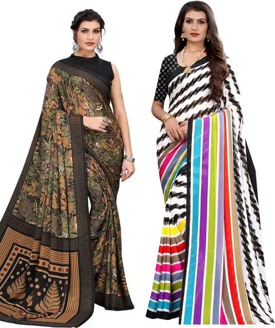 Women Georgette Casual Saree With Unstitched Blouse, Pack Of 2 (Black & Black) (YK-204) @ ₹537 - Buy Online at CityMall