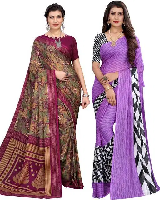 Women Georgette Casual Saree With Unstitched Blouse, Pack Of 2 (Wine & Purple) (YK-292) @ ₹537 - Buy Online at CityMall