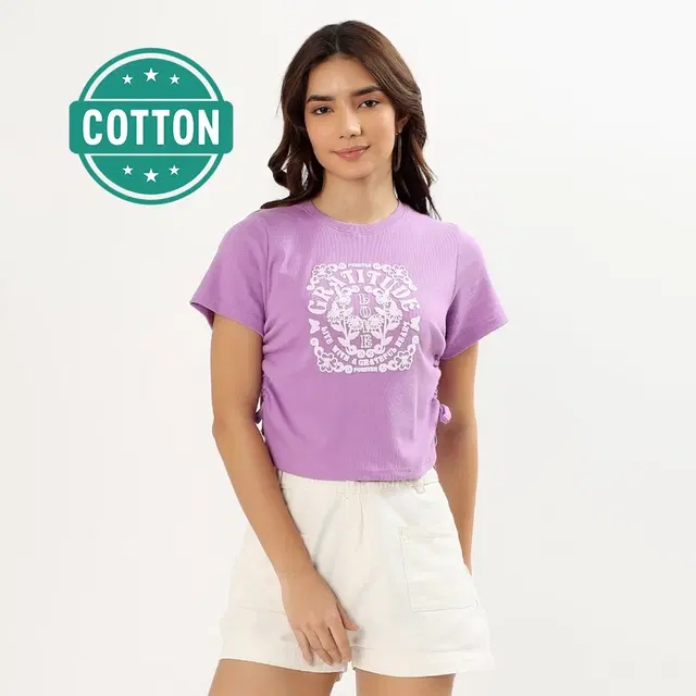 Round Neck Printed T-Shirt for Women, Purple (XL) @ ₹149 - Buy Online at CityMall